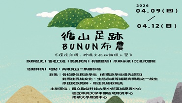 第13屆MATA獎-Butaso!努力專注!115年-116年大專校院暨高級中等學校學生原住民族主題影音及拍片企劃競賽辦法活動訊息2026-03-20 09:06:37第13屆MATA獎-Butaso!努力專注!115年-116年大專校院暨高級中等學校學生原住民族主題影音及拍片企劃競賽辦法