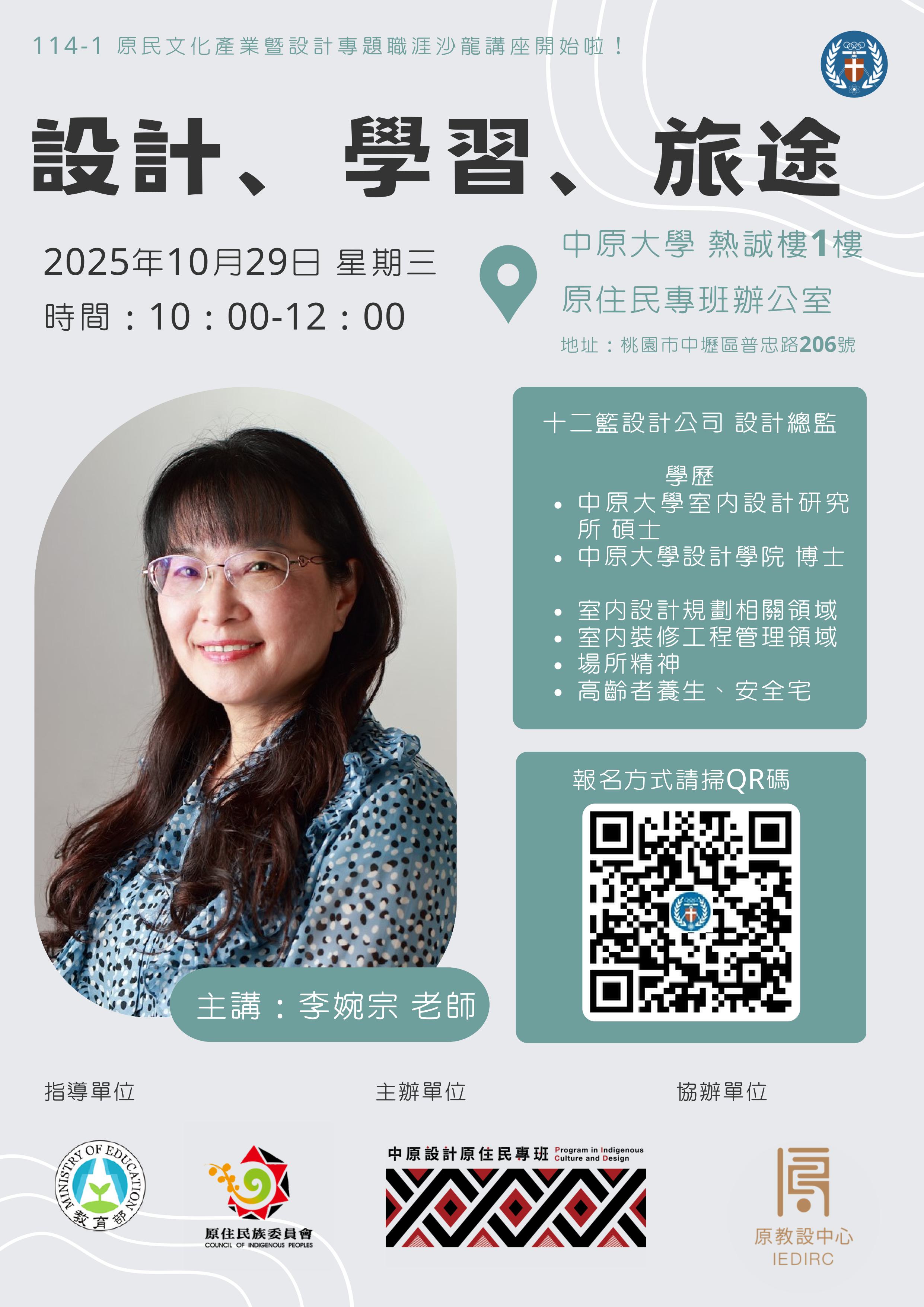 原民文化產業暨設計專題職涯沙龍講座—【職場培力】設計、學習、旅途