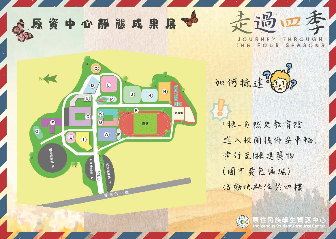 以「四季循環」為主軸,呈現學生於不同季節中參與文化課程、工藝創作與生活智慧的累積成果,讓參與者看見文化學習的連續性與深度。四季變化與自然律動是族群文化的重要基礎,透過展覽串連從春到冬的知識、情感與生活方式體現不同時期成長與心境變化。