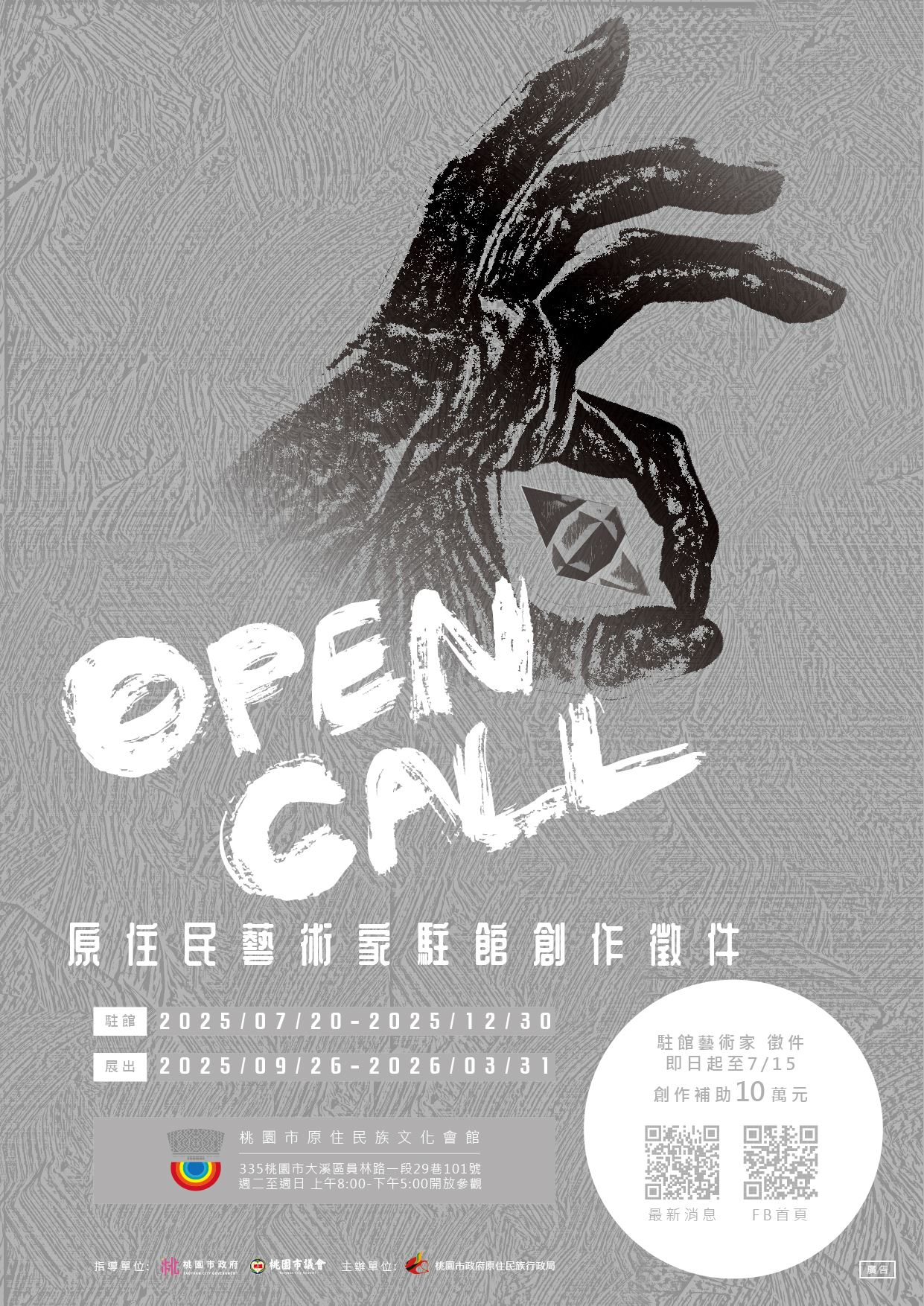 為鼓勵與支持原住民族新銳藝術家的創作發展,桃園市原住民族文化會館推「114 年度藝術家駐館計畫」,致力於培育原住民族藝術創作者。